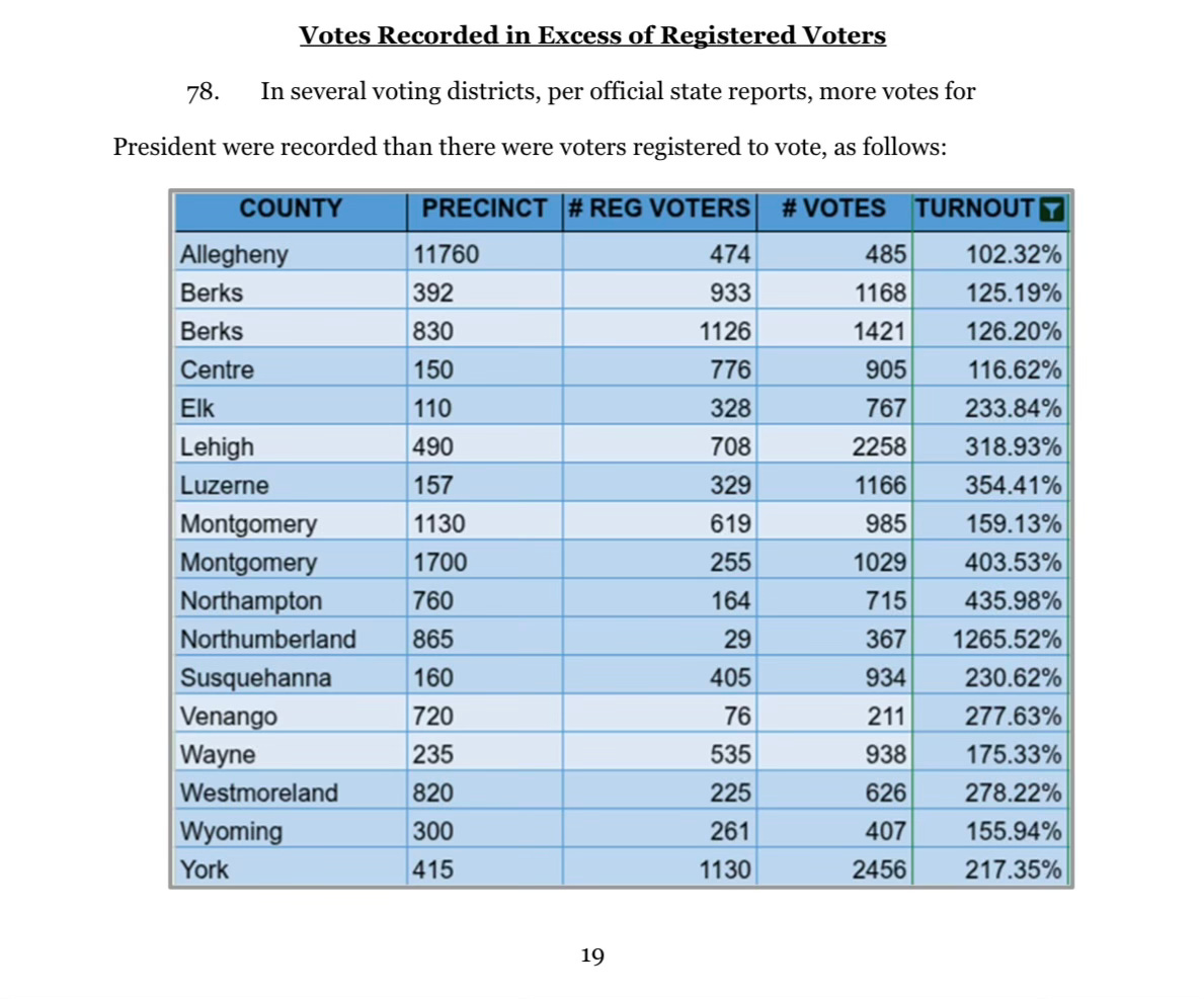 The Democratic National Committee’s internal analysis included more than 300 interviews across all 50 states—and it remains sealed. That silence may explain why voters are not being told about the Pennsylvania ballot-access lawsuit, where votes cast exceeded registered voters in some counties by as much as 1,265.52%.⁶ Such statistical impossibilities demand an explanation.